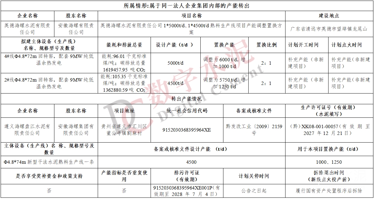 英德海螺水泥有限责任公司水泥熟料生产线项目产能置换方案