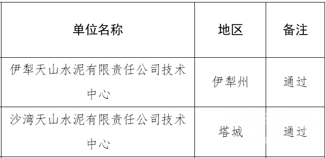 天山水泥2家公司入选新疆企业技术中心拟认定名单